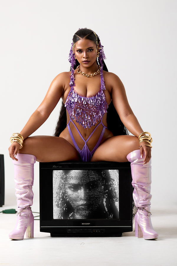 Ready to Wear...Festival Fit. Please note: Headwear is a fabric swatch, to be pinned into hair. It is NOT a hoodie. Gold hair accessory not included, but can be ordered separately. A cheeky bottom will be provided unless otherwise specified. A...